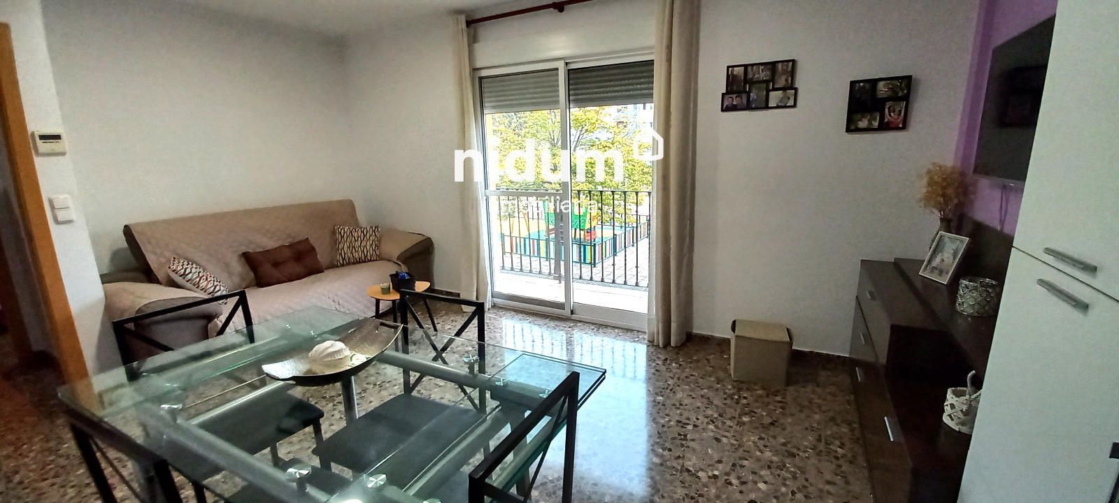 La propiedad de 85m² construidos aprox. dispone de hall que nos invita adentrarnos en ella y nos conduce a través de su pasillo a un baño completo con ducha (el de cortesía), dos dormitorios, uno de ellos con armario empotrado de gran capacidad, una cocina amplia con muebles altos y bajos y espacio suficiente para poder desayunar, comer y cenar en ella sin necesidad de usar el salón, además, desde la cocina podremos acceder a un lavadero y un pequeño deslunado  de 4 m2 a la que podrás darle un toque de color con bonitas plantas. Faltaría por mencionar en esta vivienda un segundo baño completo con bañera y un salón comedor luminoso con salida a un balcón perfecto para relajarse al aire libre. Todo ello en buen estado, listo para entrar a vivir y sin necesidad de reformas.
